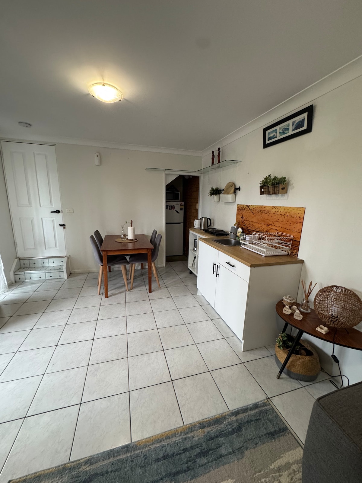 Chill out in this stylish Studio where Mid-Century meets relaxed coastal vibe. Kick back in a comfy retro armchair with a book or movie. Grab a drink and watch the passing parade from the funky patio. Cook a meal in the well-equipped kitchen and dine at the Scandi-style patio table. A cosy nest at night with blinds and screens to keep the world out. Sleep well in pure cotton bed linen with the sound of waves to sooth. Stroll across the road to the beach for fishing, surfing and relaxing walks.