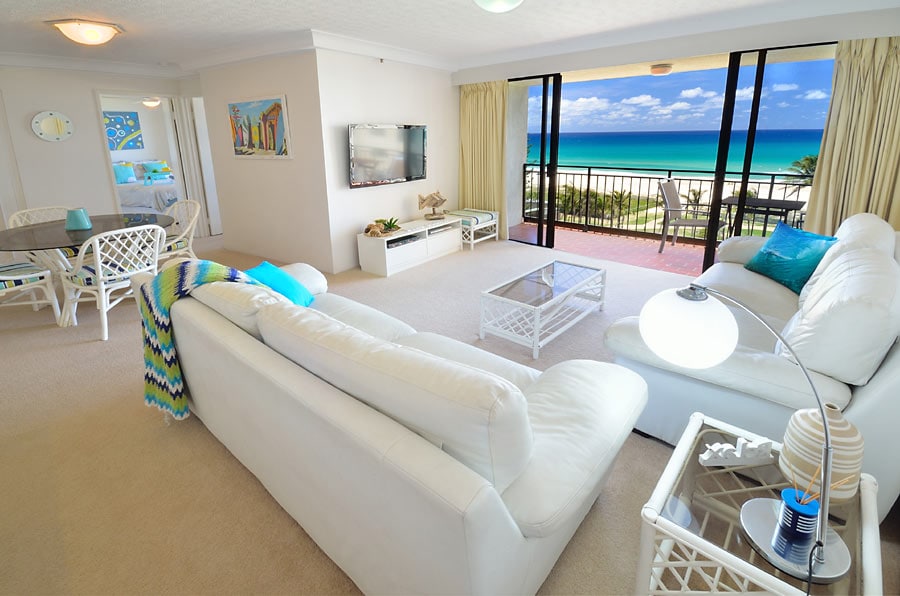 * Safe - No road to cross * Air con in each room Spacious 2 bedroom apartment with absolute waterfront location heated lagoon pool and panoramic views of the ocean , beach and Surface Paradise ski line. Well stocked kitchen and coffee pod machine allows for balcony dinning whilst enjoying views unsurpassed in restaurants anywhere else on the Gold Coast. A family friendly apartment with high chair and porta-cot makes this a ideal chose for families and well as the more mature holiday maker.