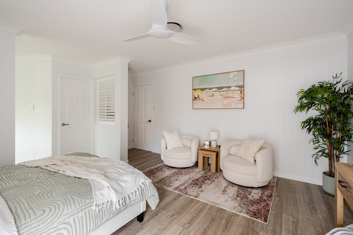 Enjoy a stylish 1 bedroom granny flat in the stunning coastal town of Pottsville on the Tweed coast situated in a quiet saburban street. Walk across the road to one of Mooball creeks entrances, set up a picnic, or take a dip. 2-minute drive to Pottsville shops and creek entrance. In town, you'll find some delicious dining options such as Okky, Pipit, Isakaya Potts, Baker Farmer & more. 25 minutes to Byron, 30 minutes to the Goldcoast, 10 minutes to Cabrita beach, and 15 minutes to Kingscliff.