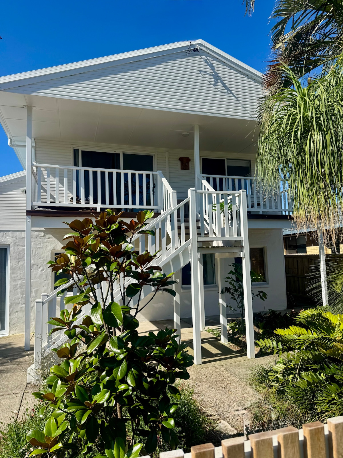 Sanitised and sparkling clean !!! This one bedroom unit with a comfortable queen size bed, one bathroom and separate sitting/lounge area is a central location and is quiet and private. The outside sitting area under the fragrant frangipani tree and garden is tranquil and relaxing for an afternoon drink. Crisp white linen is provided along with beach towels. The unit is airconditioned with TV, Netflix and free WIFI.
