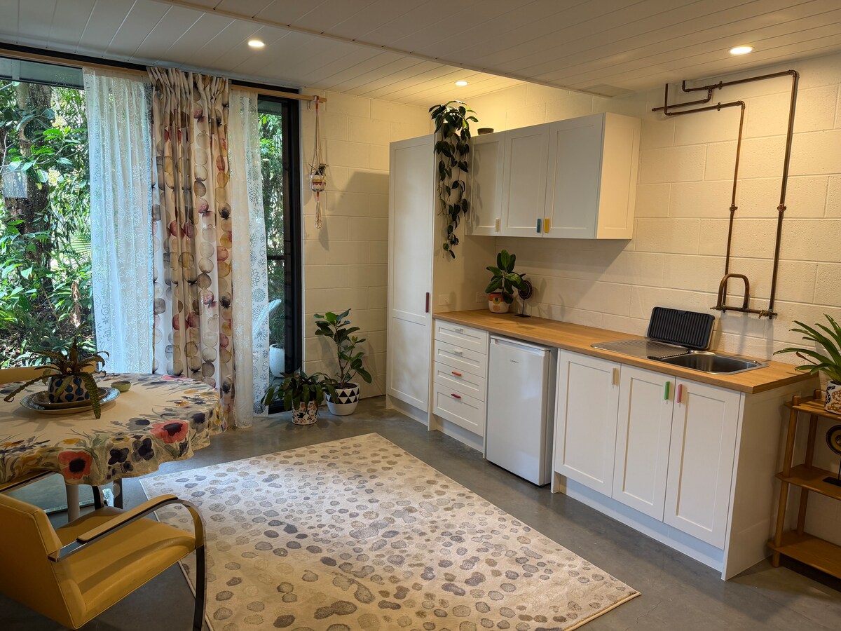 Tucked at the back of our beach home is a chic little studio, in tranquil South Golden Beach. With its own separate entrance, deck & lush garden, this relaxed space is your own private oasis. With a beautiful bed, modern bathroom and easy stroll to the beach, it offers a peaceful and intimate space to call home. We offer beach towels & bikes for guest use, plus an outdoor copper shower & fire-pit. We’re always available should you need us, but will leave you in complete privacy otherwise.