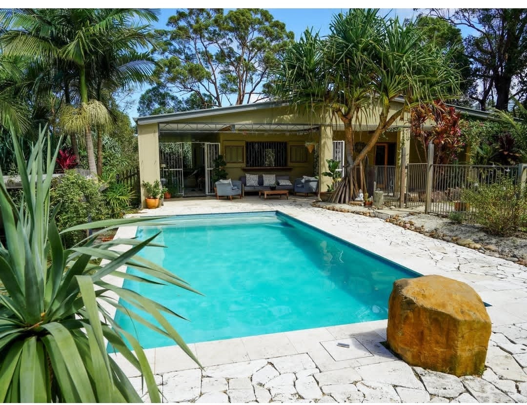 Stunning pavilion home set in a tranquil rainforest environment surrounded by tropical gardens is this stunning Balinese-inspired luxury home. Architecturally-designed to make the most of this serene and completely private location where you can relax and enjoy the soothing sounds of nature. Bookings are for use of the guest wing containing 2 x queen bedrooms, 2 x ensuite's, 1 guest lounge, outdoor bbq kitchen and pool area. Our neighbourhood is quiet. Strictly no parties or loud music