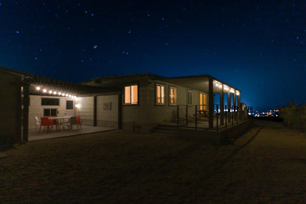 Experience the desert unencumbered by fences at the WKNDR Parkside - one of the closest homes to the Joshua Tree National Park entrance. Take in sunrise and sunset from our private hot tub, make a fire at night, and enjoy movies under the stars. After a day exploring the park (which you can hike into from the house), cool off in our outdoor shower. Just 5 minutes from downtown 29 Palms, you'll be close to everything you need all while enjoying the tranquility of your own desert oasis.