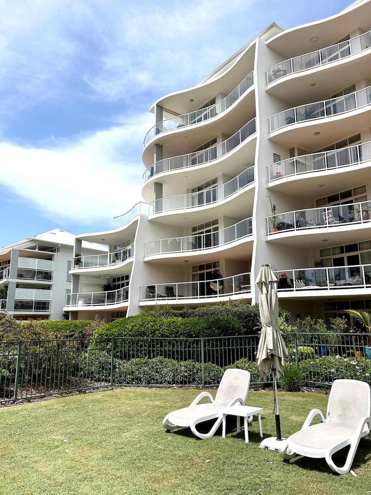 Defined by its blend of muted colours and geometric decor pieces, this subdued apartment has a streamlined style that fosters a climate of calm. A covered deck patio invites the ideal space to host a barbeque, complete with lake views. Direct lagoon water views and ground floor access make this a dream holiday destination. You can't help but relax! Ground floor apartment with your own private garden and deck with direct walking access to the resort restaurants and bar, lagoon, pool, surf beach and river. Access the resort facilities with free water sports (kayaking, water trampoline and sailing boats) and a paid water activity park perfect for the kids (and big kids too!). An 18 hole Golf course runs through the resort. This is a perfect Sunshine Coast getaway for the whole family. All linen and towels are provided. Sit on the deck and watch the world go by. The Sunshine Coast airport is a few minutes drive, Sunshine Plaza is a 15 minute drive, there are however local shops for provisions. Any questions before or while you are staying, please text, call or you can message via AirBnB. Contact details are all provided in the information pack on arrival. Set within Twin Waters Resort, the apartment is set beside the Maroochy River. It's steps away from a golf course and a beach, as well as a conservation area. Restaurants and nightlife in town are a short drive away. Full access to resort facilities may be subject to COVID restrictions. Great ideas for things to do in the area: Eumundi Markets Marcoola Eat Street Friday nights Noosa is half hour drive away Restaurants recommended outside of the resort: High Tide Cafe The Loose Goose Bulli Cafe at Marcoola Set within Twin Waters Resort, the apartment is set beside the Maroochy River. It's steps away from a golf course and a beach, as well as a conservation area. Restaurants and nightlife in town are a short drive away. Full access to resort facilities.