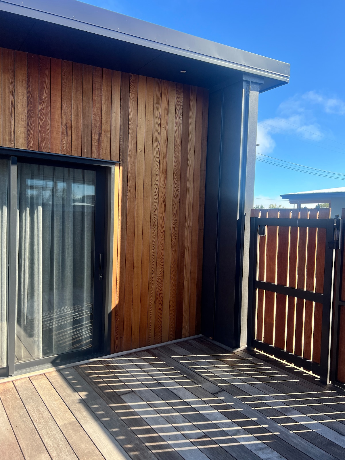 Brand new unit with ensuite. Your stay will be private as the house beside the unit is our holiday residence and won't be occupied. There is a toaster, kettle, microwave, small fridge, cutlery and crockery provided. The bathroom has a shower, toilet and basin. Linen is provided alone with 2 towels, 2 faceclothes and a hand towel. There is off street parking and it is about a 10 min walk into the township or to the river.