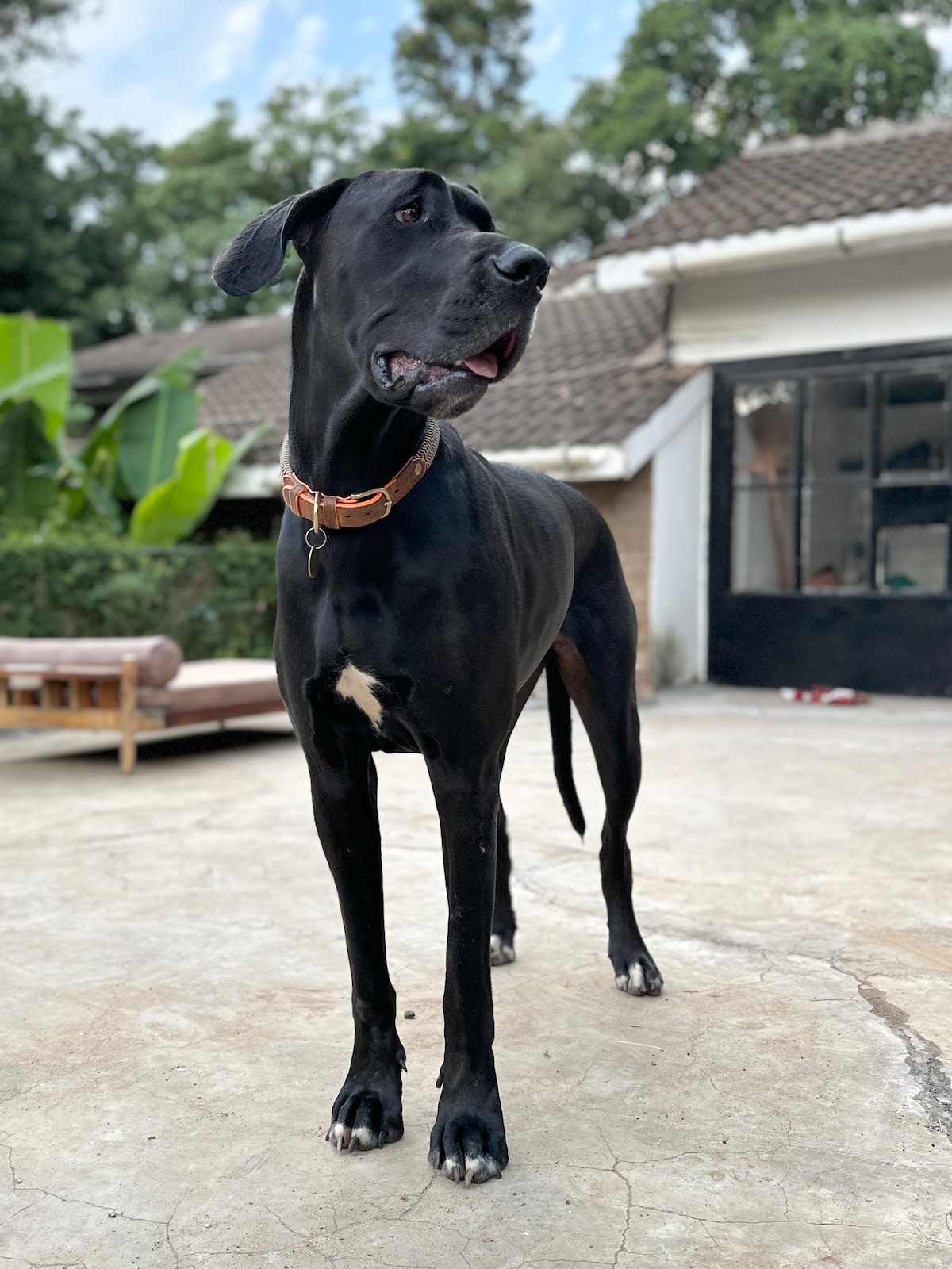 This unique studio is spacious and has a style of its own. The high rustic cabin ceiling makes it stand out, and it has a beautiful mature garden view.