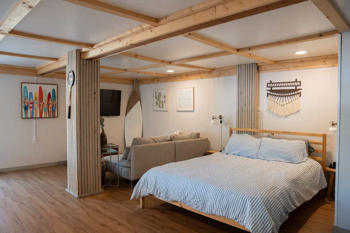 海滨豪华!特大号床65英寸电视匹克球和酒吧