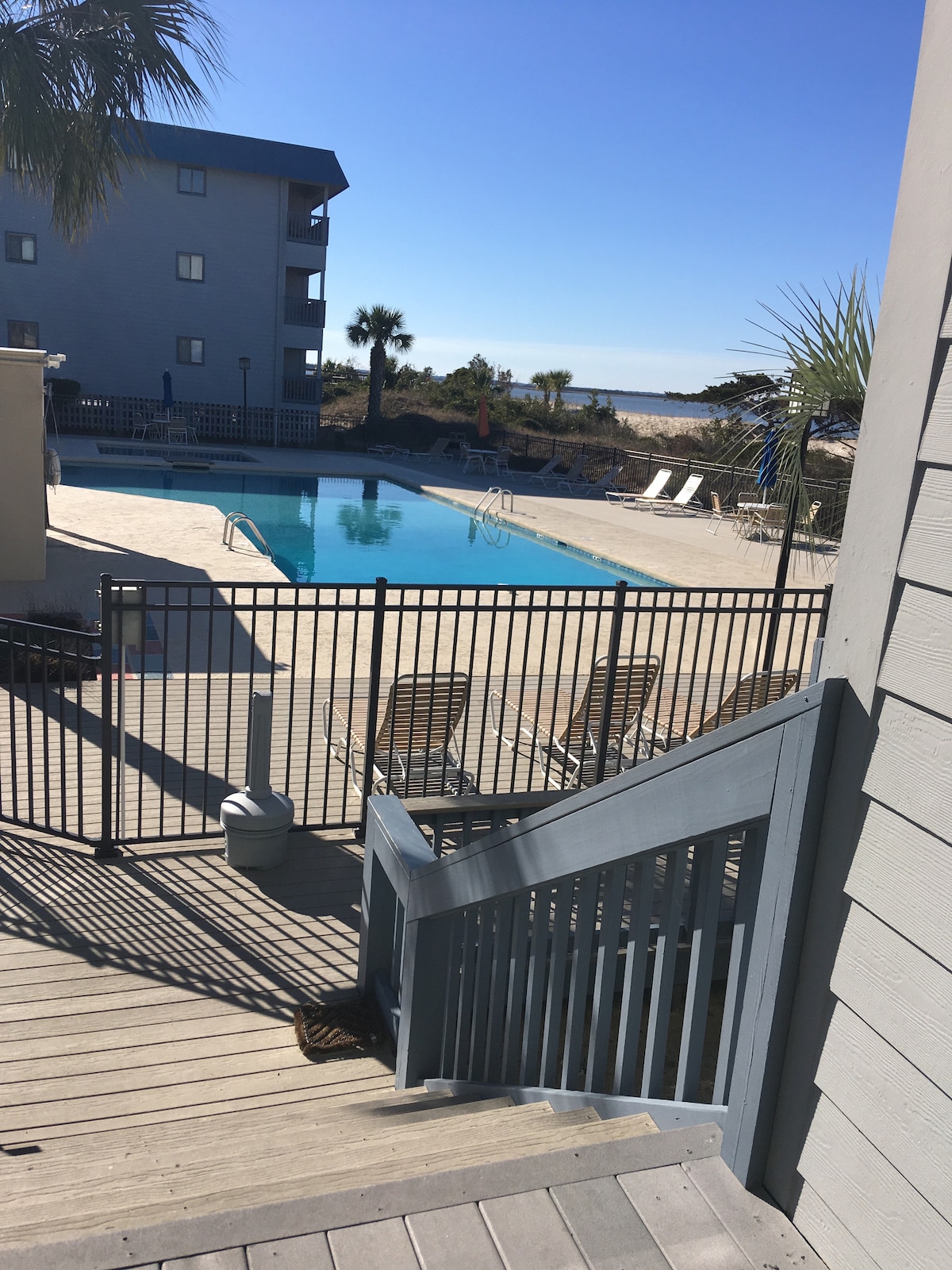 Our cute and quaint family condo is right on the beach with an unobstructed view of the Atlantic Ocean. Enjoy the view from the deck off the living room. Wake up to the view from the master bedroom window which also overlooks the beach. You will be close to everything on Tybee when you stay at our centrally-located condo. Several restaurants and shops are close by. The condo has a full kitchen and washer/dryer to make your stay even more enjoyable and convenient.
