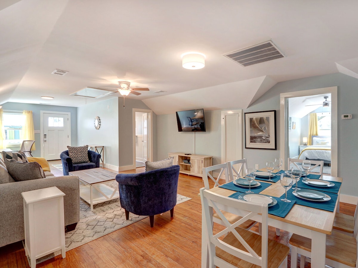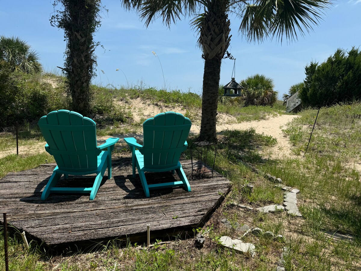 🏝️ 1/2 block from beach 🏝️ Charming and sought-after getaway in the heart of North Tybee. This private condo offers complete privacy, a separate entrance, and dedicated parking. Relax on the spacious balcony that faces the beach. Enjoy fast WiFi, a 50” Smart TV, a fully equipped kitchen, & all the essentials for a comfortable stay. This dog-friendly retreat also features free off-street parking, a charcoal grill, & on-site laundry. Conveniently less than a block from restaurants & shops!
