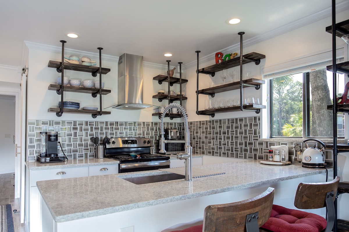 This recently renovated funky beach cottage will give you all the hip granny vibes, in the best way possible. The cottage is ideally situated 4 blocks from the beach and 2 blocks from some of Tybee's best food and drinks - Chamaco's Tacos, Stingrays, Mi Vida, and Breakfast Club to name a few. When you aren't at the beach, enjoy the Jungle Bar we’ve created outside, play some shuffle board, grill out, take an outdoor shower - enjoy it all outdoors!