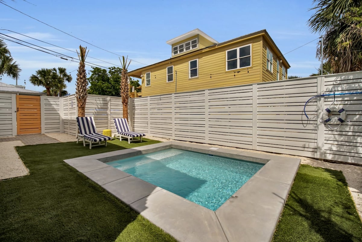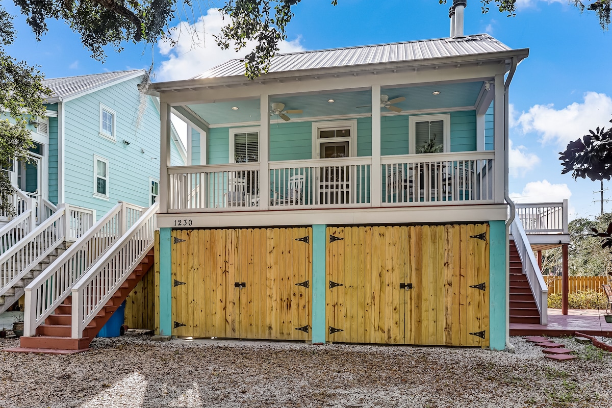 Kick back and relax in this calm, stylish space. Peaceful setting and super quiet neighborhood. Enjoy my amazing slice of heaven! Private, whimsical, side patio with charcoal grill, great front porch, and super quiet area. Yet, only 4 blocks to the beach & back river for incredible sunsets and 8 blocks to the downtown district and peir. This is a house split in half, so locked doors between you but noise consideration is appreciated!