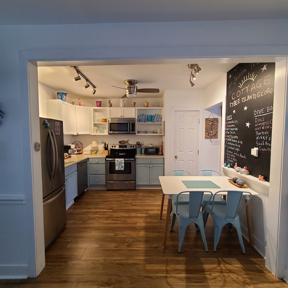 Location, location, location! The Hidden Pearl is a restored 1910 cottage; said to have been part of the old Ft Screven army base on the north side of the island. The "Pearl" is a small (756sf) cottage now located in the (commercial district) heart of Tybee's South (main) beach. Cottage is "beach vibe" decor & cozy. Enjoy two separate spacious deck areas with privacy fencing, charcoal grill, and outdoor hot/cold shower. Park and walk ... 0.3mi to beach & pier, shops, dining & sweet treats.