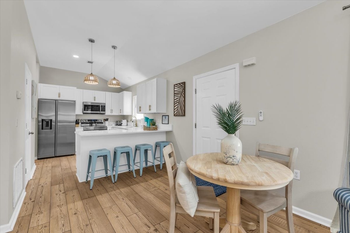 This is a newly-renovated adorable duplex that has everything you could want for a fun-filled beach vacation! Features of Coastal Joy duplex: open concept with living/dining and kitchen all together. Bright, white kitchen with stainless steel kitchen appliances. Lots of comfortable seating in the living area with flatscreen TVs in living area and both bedrooms. Full bathroom with tub/shower combo and fun sliding barn door for privacy. Loads of fun, colorful beach decor and accents