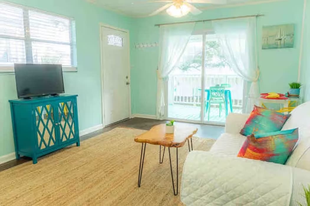 Kick back and relax in this calm, stylish space. Peaceful setting and super quiet neighborhood. Enjoy my amazing slice of heaven! Private, whimsical, side patio with charcoal grill, great front porch, and super quiet area. Yet, only 4 blocks to the beach & back river for incredible sunsets and 8 blocks to the downtown district and peir. This is a house split in half, so locked doors between you but noise consideration is appreciated!