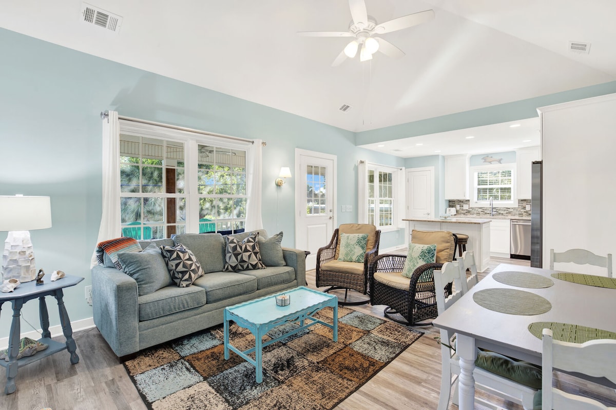 Welcome to Siren & Seafarer Cottage! Immerse yourself in all that Tybee Island offers with your own FREE GOLF CART, BIKES, & KAYAKS. Pamper yourself with this luxurious getaway and nature-lover's paradise. Relax on your PRIVATE DOCK on a cozy swing bed while surrounded by panoramic views of the tidal creek. Nestled amongst enchanting live oaks and marsh-side scenery, you'll soon discover something inherently romantic about this Tybee Island cottage, just 25 minutes to downtown Savannah.