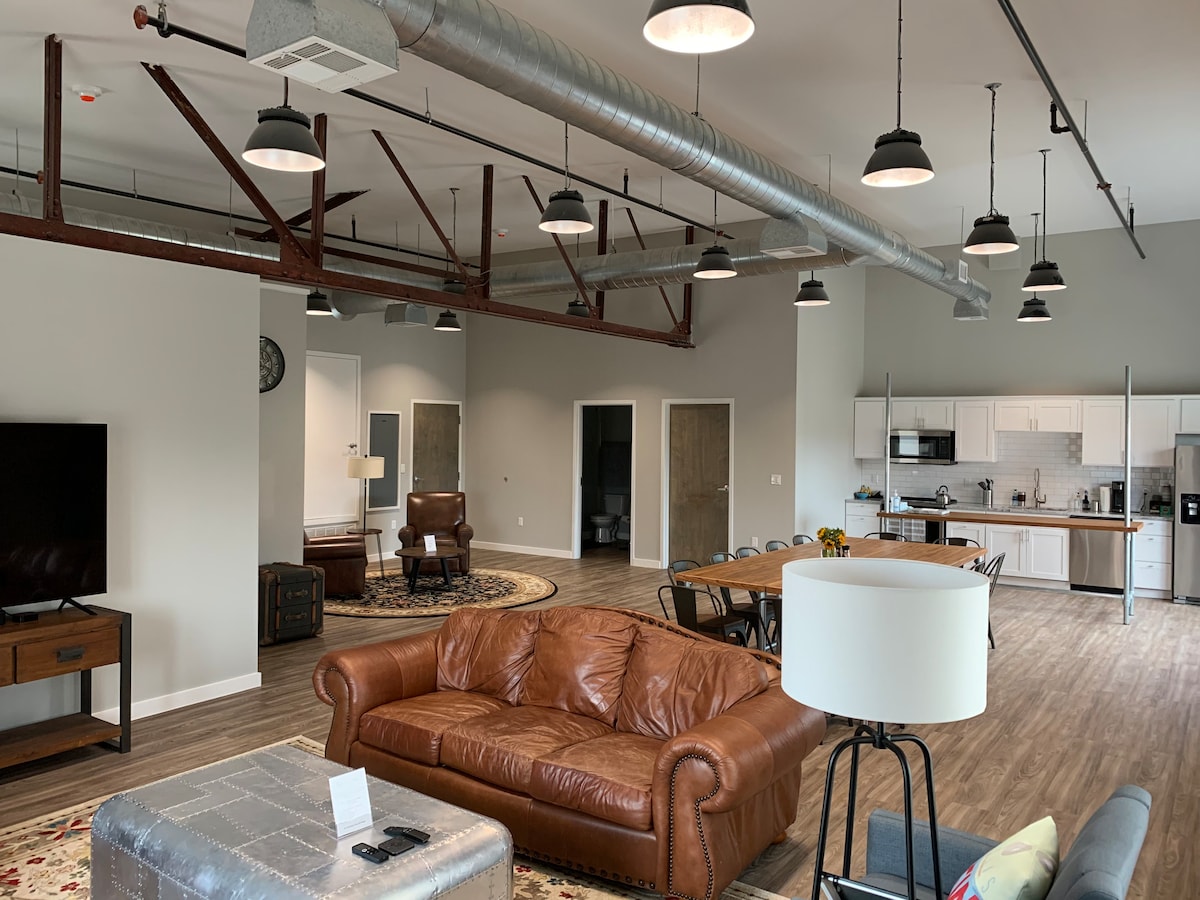The largest guest room at The Thomas Hotel has two detached bedrooms with king beds. Enter into a living room with comfortable and stylish furnishings accompanied by a kitchenette with a Nespresso machine, refrigerator, microwave and sink. This suite accommodates two to four guests perfectly with two King beds in the detached bedrooms but can easily transform to allow for additional guests with the queen sized sleeper sofa in the living room. The light and airy bathroom has a tile walk-in shower