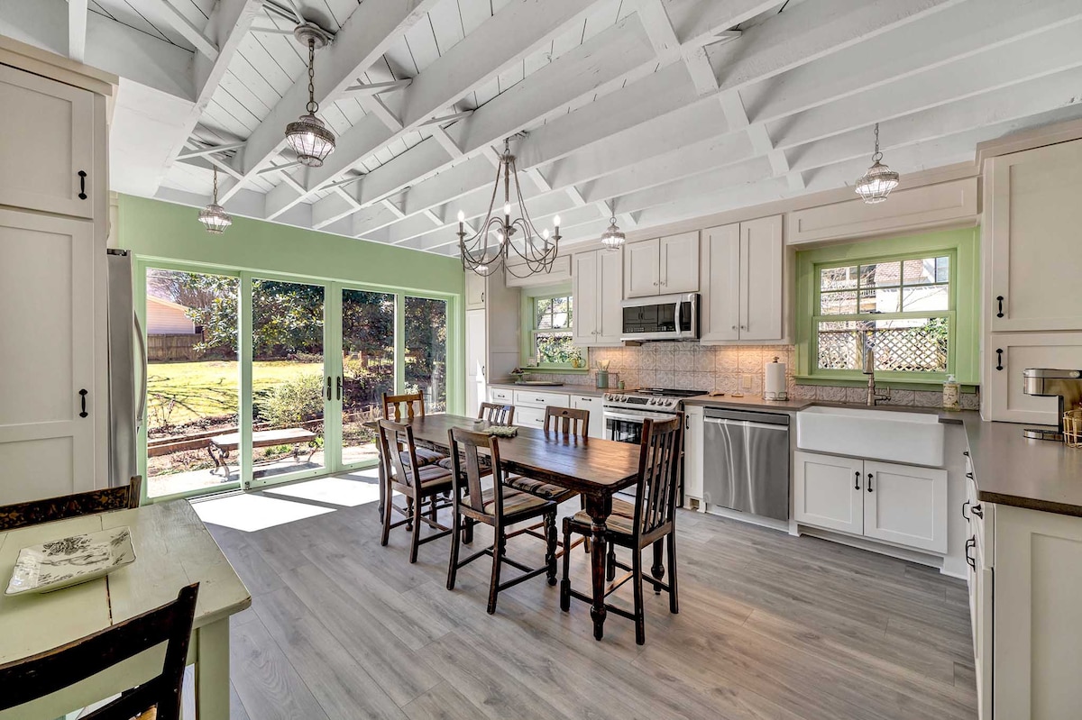 Stay at Stars Hollow House, a pet-friendly 3-bedroom in Tyler’s historic district. Minutes from UT Health, CHRISTUS, and downtown, this single-level home is a just about perfect. Enjoy a spacious fenced yard for pets, stocked kitchen, washer/dryer, WiFi, workspace, and free parking. We've worked on the details. From the books to the board games, to the antique-mixed-with-modern decor...we hope you'll make our bright cottage your FABULOUS home base. Ask about discounts for monthly pricing!