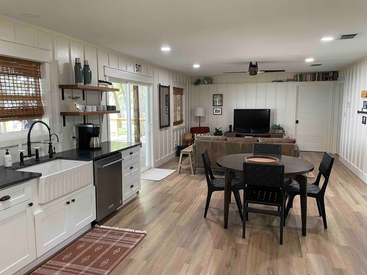 BOAT DOCK available upon request. Camp Dogwood is a perfect getaway from the busy city. This 1500 sq ft cabin is right on the water, perfect for a relaxing weekend with friends or family. The stunning views and large patio are great for sunrise or sunset with a cup of coffee or a cocktail. We have everything you need- fully furnished, fast internet and all your kitchen needs.