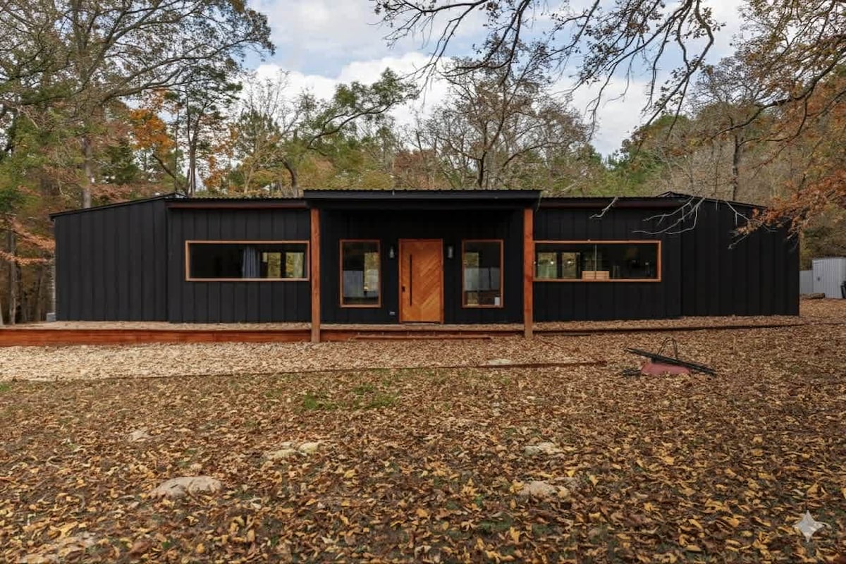 The Diamond P is a peaceful retreat in the East Texas Piney Woods. This barndominium-style home also offers a wide covered porch, large patio with fire pit, tiki bar and hot tub where you can enjoy the tranquility of nature. Kids will love the tree house, or the play house tucked back in the woods. Sitting on twenty acres that include walking trails and a creek, it is perfect for a family reunion. Ambitious visitors can camp in the yard or wooded clearings and enjoy nearby Lake Palestine.
