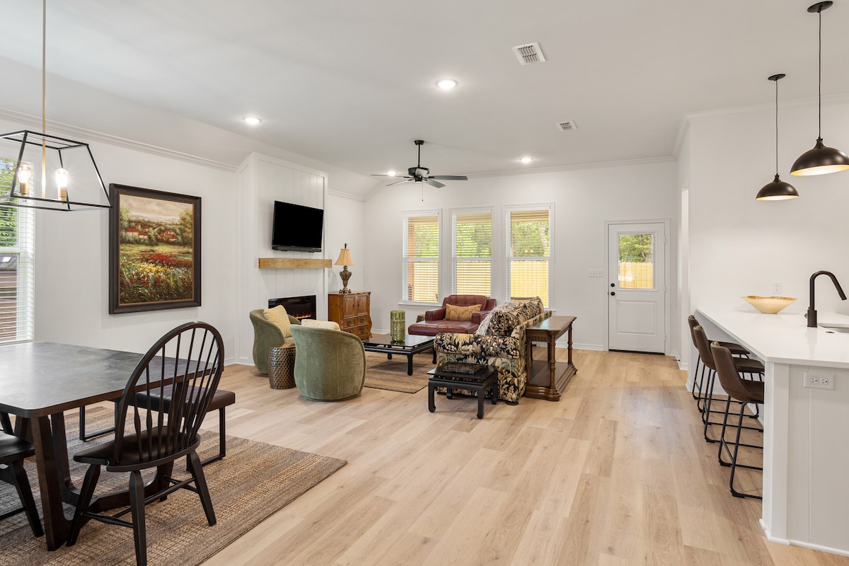 This fully remodeled 2700 sq ft boho-chic home in South Tyler sits in a beautiful, tree-lined, safe neighborhood. It features 4 bedrooms—three with king beds and one with 2 bunkbeds. Designed for relaxation and fun with family and kids in mind, it offers 4 large TVs and an ultra-comfy 11-ft sofa perfect for movie nights. Enjoy pool, ping pong or foosball in one of two game rooms, or unwind in the outdoor living space and fire up the grill.