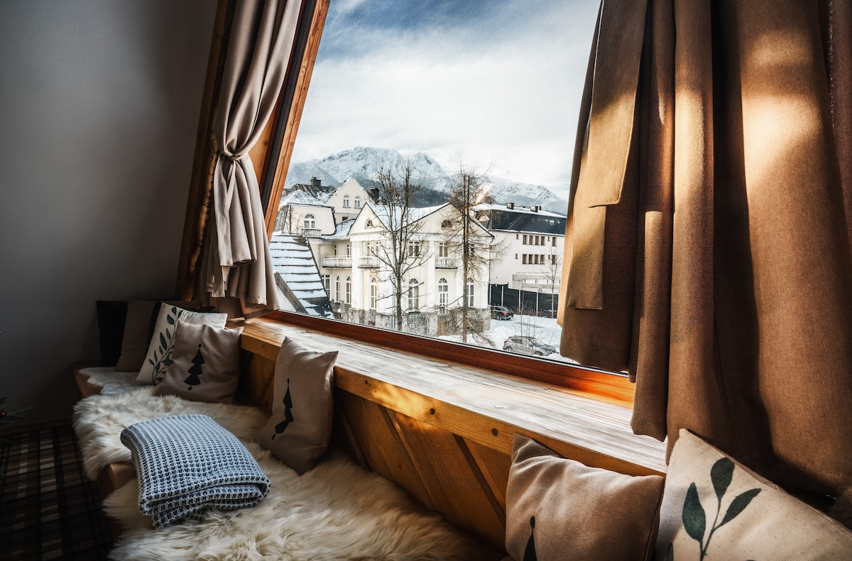 One-level apartment (100 m2) located in a wooden house at an altitude of 1050 above sea level!!! The entrance is separate. The apartment has a large terrace, we provide deckchairs. The view of the mountains "enters" the living room:) You can park your car on the property. The sauna and fireplace are free ,the 2x jacuzzi ( wood hot tub) paid extra. You can reach Gubałówka on foot(1 hour) and go by ropeway to Krupówki (4 minutes). Surroundings: hiking and cycling routes, ski slops!
