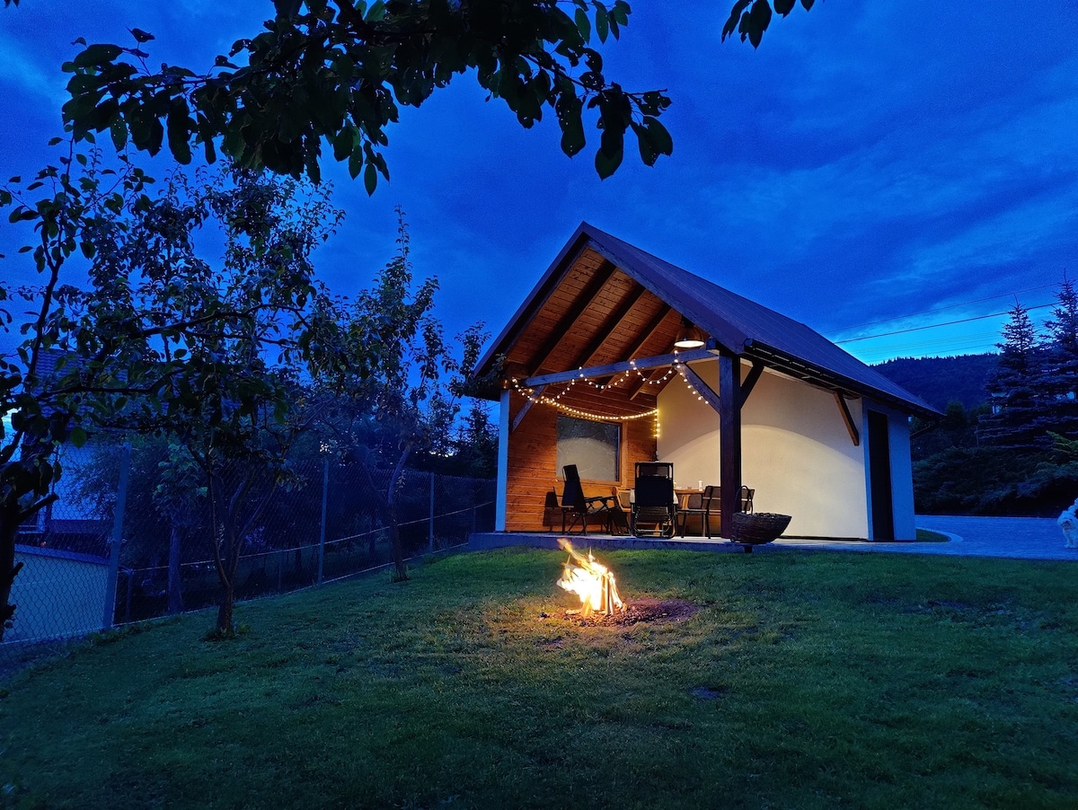 Domek jest położony na górskiej polanie, w pełni wyposażony, Chata ma wielkość 35 m2 kwadratowych jest w niej wszystko co potrzeba do normalnego funkcjonowania. Toaleta, prysznic, kuchnia połączona z pokojem dziennym i sypialnią, z pokoju dziennego można wyjść na balkon z którego widać całą polan i Tatry bielskie. Na dachu budynku jest duży taras gdzie w ładne dni można uprawiać jogę lub odpoczywać. Możliwość skorzystania z sauny i bali za dodatkową opłatą Bali 150 zl-2,5h Sauna 150 zl-2,5h