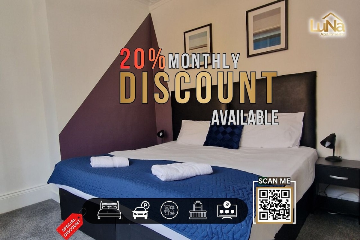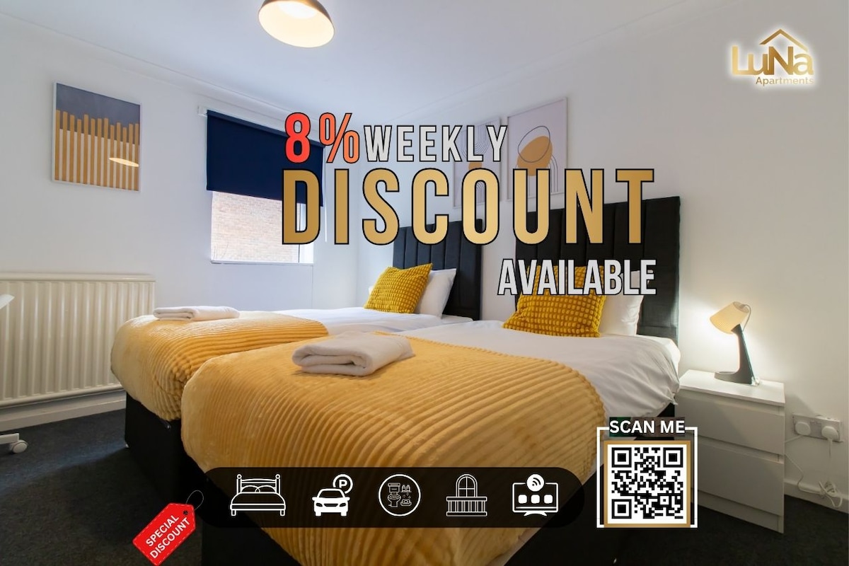 BOOK TODAY with ★Dwellcome Home Ltd★ Landlord management services: long term (2-5 years) hassle/maintenance free (we do it all) guaranteed rent agreements ★Find us for BEST price, long term discounts & service direct★ ✪ Modern 2 bedroom 1st-floor apartment ✪ 4 beds; 1 king (& single), 1 double, lounge sofa bed ✪ Free Parking ✪ Family bathroom ✪ Well-equipped kitchen ✪ Dining area ✪ Free unlimited 100 Mbps broadband ✪ Netflix TV ✪ Spotless ✪ Quiet area.