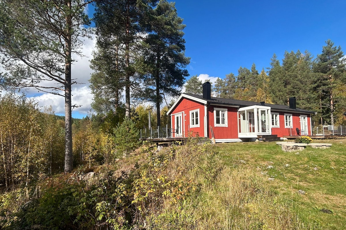 Efter en grusväg uppe på ett berg i hjärtat av finnskogen hittar ni lugnet i det här smultronstället med allt som behövs för en underbar semester.här bor man med tystnaden mitt i naturen, precis vid en sjö men med alla bekvämligheter man kan tänkas behöva. I närområdet finns flera sjöar och fina fiskevatten, möjligheten att plocka bär och svamp, vandra eller varför inte ta en tur upp till ”rännbergs toppen” (vandringsled upp till en närliggande bergstopp)
