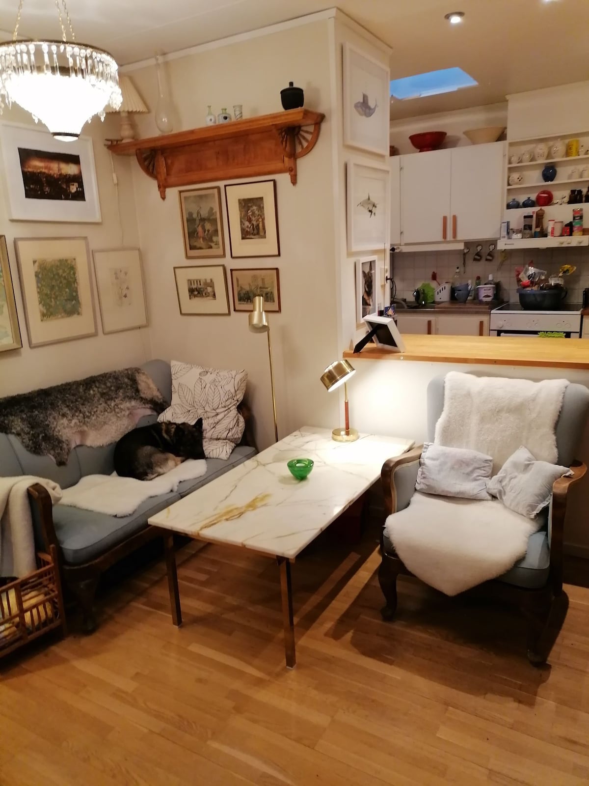 On a fantastic lake plot with sun all day and a lakeview from the accommodation, this house of 55 sq.m. is located on part of our large plot. There is a sauna, bathing dock, sandy beach and grassy areas. Wintertime we drill an ice sink for swimming. Living room with dining table, sofagroup and fireplace. Well-equipped kitchen with i.a. dishwasher, microwave, oven, fridge and freezer. Bedroom with 180cm bed. Bathroom with shower and compost toilet. Washing machine and dryer. Stockholm City 25 km