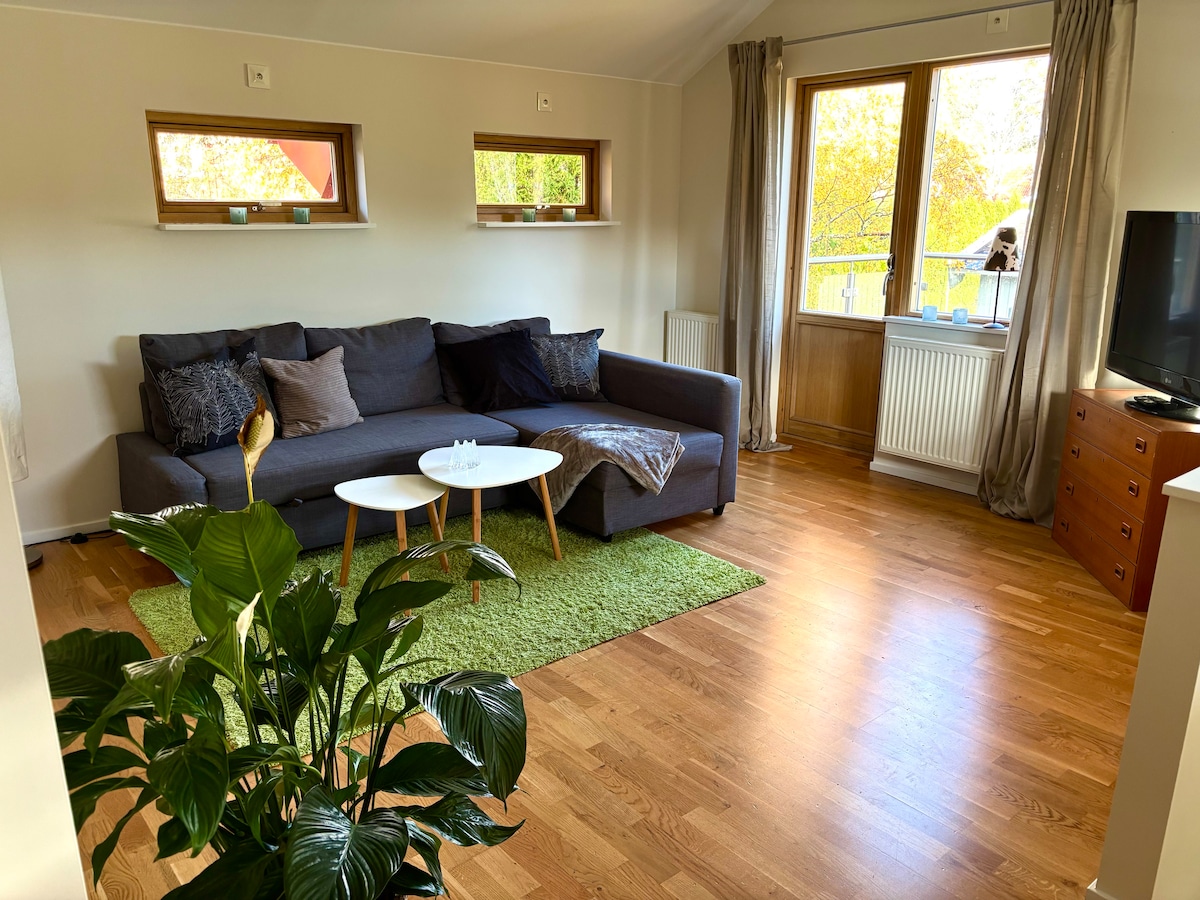 Välkommen till vårt charmiga fristående hus med bastu. Gångavstånd till både hav och sjö. Huset byggdes 2018 och är fördelat på två våningar med gedigen golvvärme. Huset har ett modernt, fräscht kök som är fullt utrustat. Huset är möblerat med ett matbord och stolar, utemöbler, en dubbelsäng, en bäddsoffa samt en 43-tums TV. Huset erbjuder gratis parkering (flera platser finns). Gräsmattan nedanför huset kan också nyttjas av gäster. Buss som går i närheten tar dig smidigt in till Gullmarsplan.