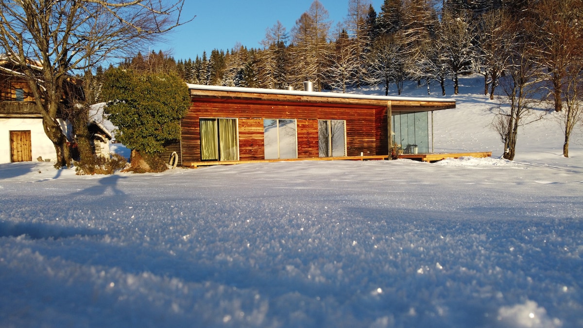 Situated on the outskirts of a Tyrolian mountain village this place offers you a wonderful-broad view. The apartment, lovingly combining tradition and modernity will let you calm down and recharge your batteries instantly. A closeby cable car enables you to all kinds of mountain sports in summer and winter. Yet- even those, who just "stay and relax" will feel at home. WIFI, TV, BT-boxes, parking space are available free of charge; for the Sauna we take a small feey. Kitchen is well equipped .