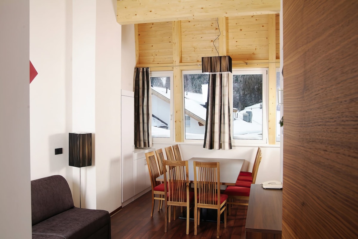 MODERN, LUXURIOUS AND RELAXING: These 3 words probably best describe a feel-good holiday in astellina hotel-apart****. Ischgl holiday at its best awaits you in our house with modern and sophisticated architecture, modern-design and clear shapes. A wellness-area, wireless internet access, big flat TVs in all of our rooms and apartments and much more we offer you in our hotel., This apartment is located on the 3rd floor with a unique design and high-quality furnishings: 2 large double or triple b