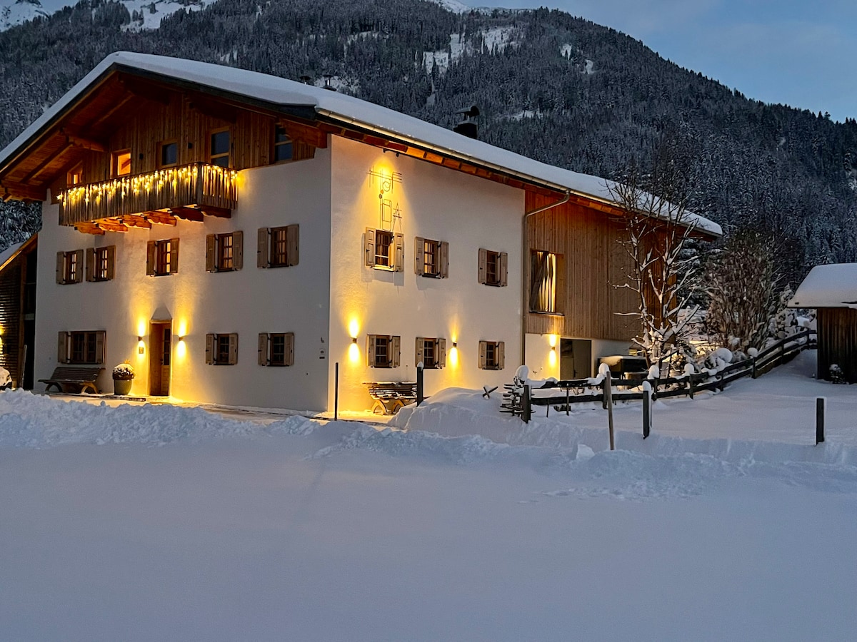 Der Donkhof ist ein rund 200 Jahre altes Tiroler Bauernhaus und wurde in den letzten Jahren unter Verwendung ökologischer Baustoffe von uns liebevoll kernsaniert. Im gesamten Haus befinden sich Massivholzböden, die Wände sind mit Kalkputz und Lehmfarbe gestaltet. Viele Details wurden restauriert, zb Wandmalereien und altes Gebälk, aber natürlich wurden Badezimmer und Küchen nach modernsten Standards eingerichtet. Auszeichnung mit dem Prädikat `4 Edelweiß S ´vom Privatvermieter Verband Tirol!