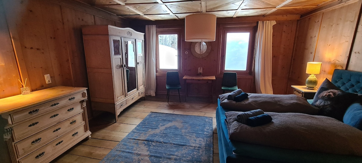 Genießen Sie schöne Tage im Kaiserhaus mit Garten & wunderbarem Blick auf die Berge. Ein 200 Jahre altes Holzhaus wurde hier in der Nähe abgetragen und neben meinen Haus wieder aufgebaut. Das neue (alte) Holzhaus wurde sehr ökologisch und auf neuestem Stand wieder hergerichtet. Dieses Studio wurde fast nur mit altem & neuem Holz ausgekleidet - man sieht noch die alte Handwerkskunst. Dennoch ist auch das Moderne wie Beamer, Alexa Sprachsteuerung eingebaut. Parkplätze stehen zur Verfügung.
