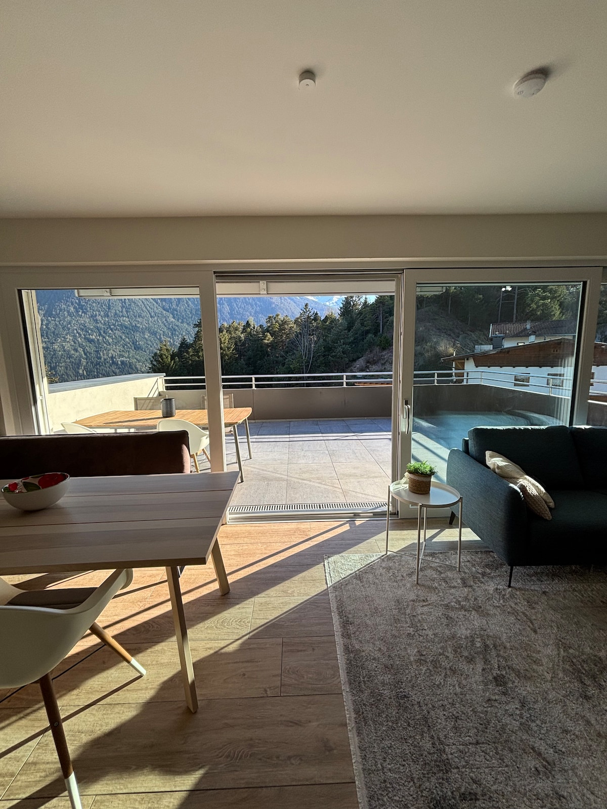 Elegante Penthousewohnung im modernen Alpenstil am Seefelder Plateau. Die gemütliche, ruhig gelegene Wohnung im letzen Stock ist für bis zu 4 Personen sehr komfortabel ausgelegt. Sie verfügt über hellen Wohn-Essbereich mit moderner komplett ausgestatteter Küche, zwei Doppelschlafzimmer, zwei Badezimmer, Bodenheizung, gratis Wi-Fi und eine sehr große private Terrasse. Von dort aus können Sie die atemberaubende Aussicht auf die Berge und das Inntal, sowohl im Sommer als auch im Winter genießen.