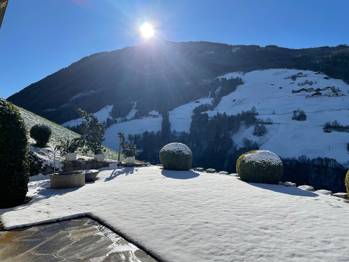 Situated on the outskirts of a Tyrolian mountain village this place offers you a wonderful-broad view. The apartment, lovingly combining tradition and modernity will let you calm down and recharge your batteries instantly. A closeby cable car enables you to all kinds of mountain sports in summer and winter. Yet- even those, who just "stay and relax" will feel at home. WIFI, TV, BT-boxes, parking space are available free of charge; for the Sauna we take a small feey. Kitchen is well equipped .