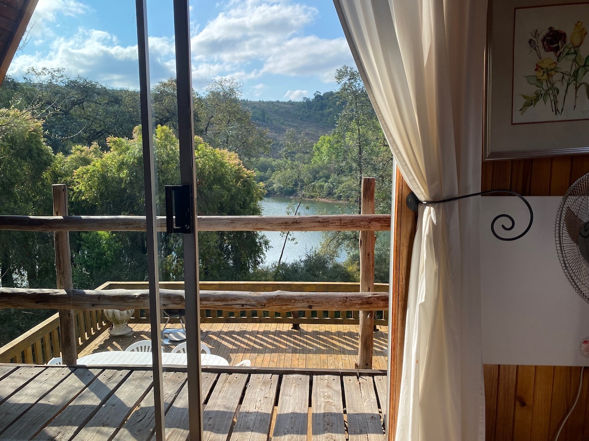 A secluded, rustic wooden A-frame cabin in Magoebasfloof, filled with antiques, chunky blankets & fireplace. Nestled in a deciduous forest, overlooking Ebenezer dam & is safely tuck away on a quiet peninsula. Dirt road is well maintained & suitable for all types of cars. Conveniently situated only 3km from Haenertsburg. Ideal for a romantic interlude and outdoor enthusiasts. Launch site for boaters and fisherman. Suited for MTBiking, walkers, trial runners and birders.
