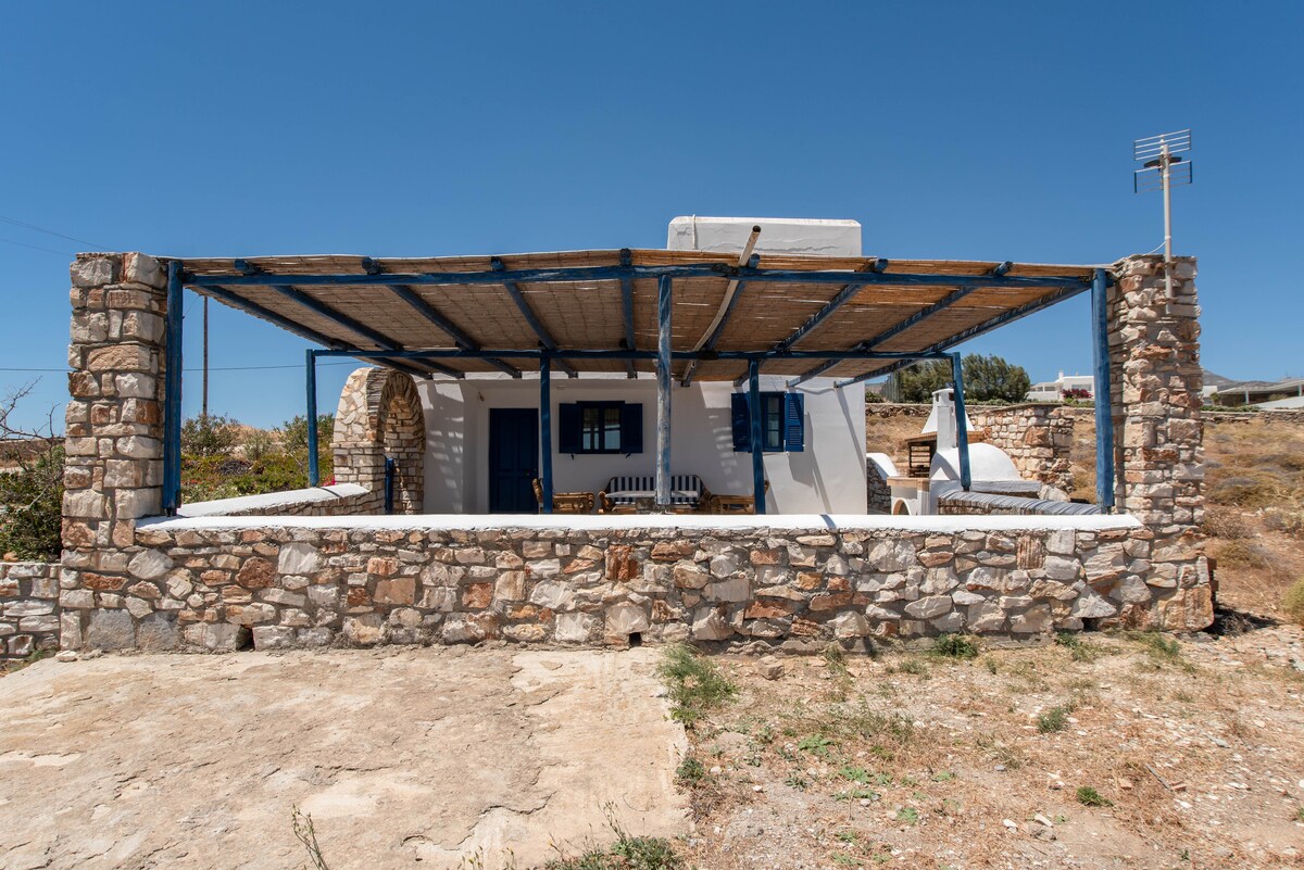 The house is built of stone and is located on the hill overlooking the unique sandy Golden beach (Xrissi akti) in a big plot of land planted with olive and fruit trees, plants and flowers.