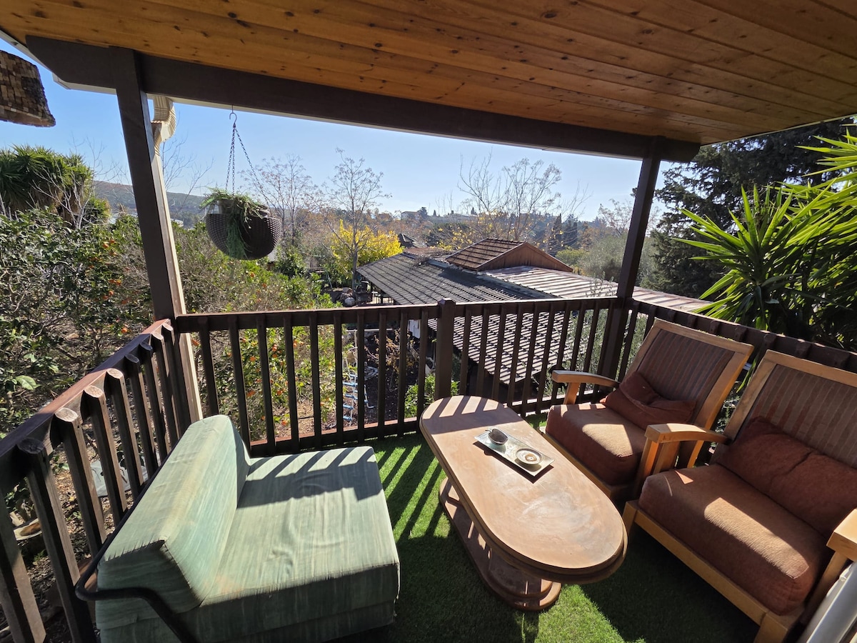 two-bedroom apartment Located in one of the most beautiful regions of Israel with amazing views, overlooking the Meiron and Arbel mountains, and the Sea of Galilee. A mere 5 mins walk from the Parod River and waterfall, beautiful lush green landscape and tracks, amazing natural, historic sites, rural villages and local attractions, such as the Amud River, The Miron Orbital track, and much more. Suitable for Nature lovers who want to enjoy the peace and tranquility of the Upper Galilee.