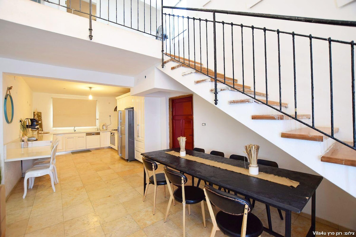A Unique Artistic Custom made Retreat in a Flow Studio Discover a one-of-a-kind vacation that blends creativity, relaxation, and inspiration. Our spacious 90m² studio offers a serene and artistic environment, ideal for dancing, meditating, or simply unwinding. Surrounded by greenery and filled with natural light, the studio features a wooden floor, a private balcony with a small view of the Sea of Galilee a kitchen ,a bathroom sleeping in mattresses in a one space loft.