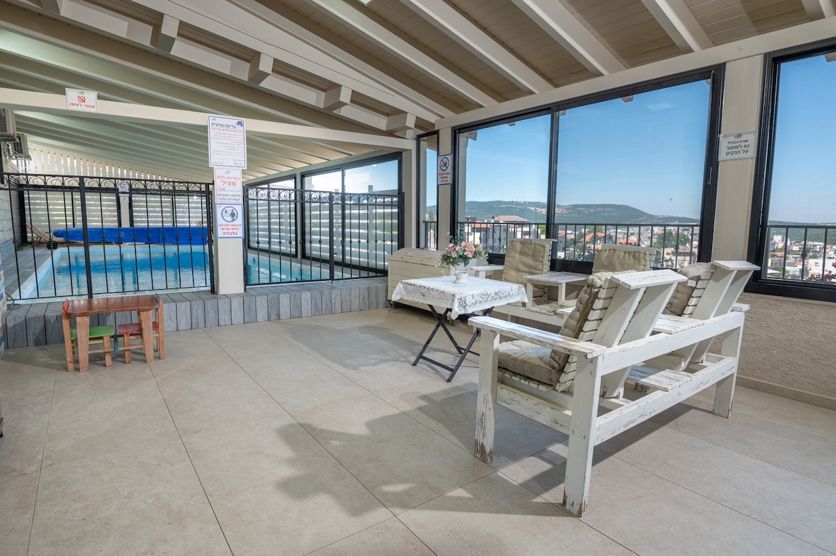 Suite description: Intended for: a couple or two / family Internal complex - large and spacious suite, with living room and two bedrooms. In the living room - a large LCD screen connected to a streamer is open to all channels. The kitchen is perfectly equipped and suitable for full hospitality and cooking, In the courtyard of the suite - a large and pampering spa Jacuzzi corner, a heated pool in summer, a built-in barbecue stand and a quality trampoline for children, a sitting area/