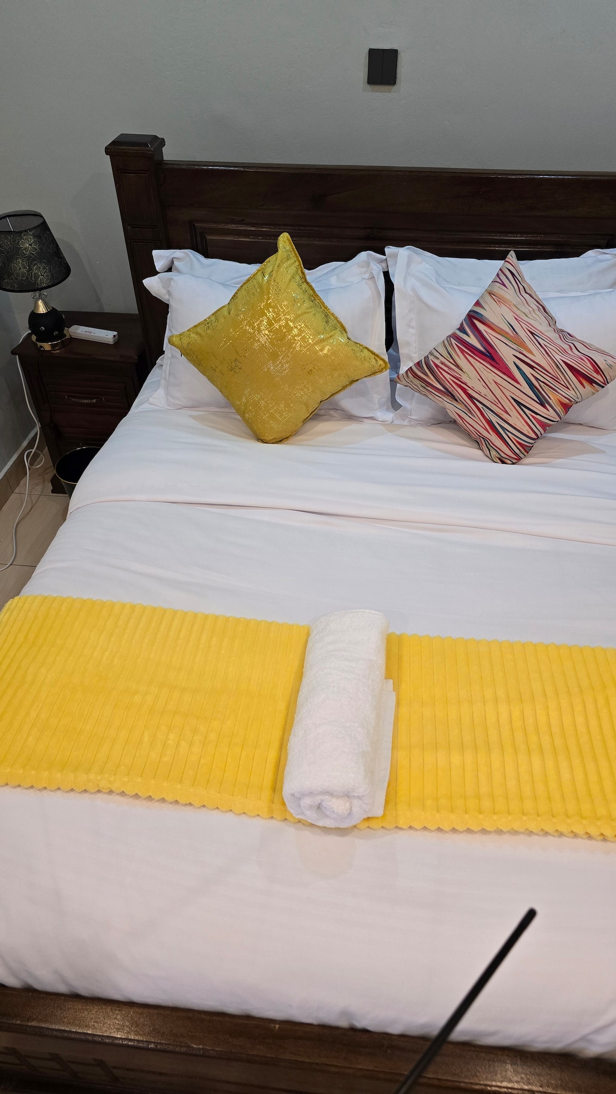 Welcome to our 3-bedroom, 2-bath BnB located in a peaceful neighborhood. The property offers easy access to the airport and Eldoret town, and has ample parking. Enjoy self-check-in, fast Wi-Fi, and a smart TV in the spacious living room. The master bedroom has an en-suite bathroom, and there's a fully equipped kitchen with an access to a backyard. Guests have access to a shared swimming pool and gym. The host is available for assistance. Enjoy comfort, security, and convenience during your stay.