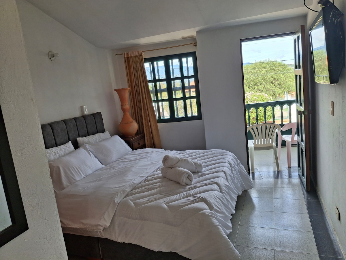 Villa de los Juanes is a perfect retreat to relax and connect with nature. Our cozy house offers two independent rooms with double beds, a dining room, a bathroom with an electric shower, a work-study, a fully equipped kitchen, an outdoor patio with BBQ, private parking, and 3,400 square meters of green space. We provide fast Wi-Fi, television, books, and board games. Let yourself be charmed by the peace that this beautiful place inspires. Only a 10-minute drive from Villa de Leyva (5 km).
