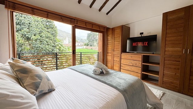 Espectacular apartamento equipado con increíbles detalles de buen gusto. Lugar con ubicación inigualable en Villa de Leyva. A pocos pasos de la Plaza Mayor, está cerca de todos lo puntos de interés como museos, restaurantes y parques. El lugar está impecable. Cuenta con TV, WiFi, baños con agua caliente. Tiene un balcón hermoso para disfruta bellas vistas. El lugar tranquilo para descansar. Este alojamiento es de índole familiar. Solo se aceptan grupos familiares.