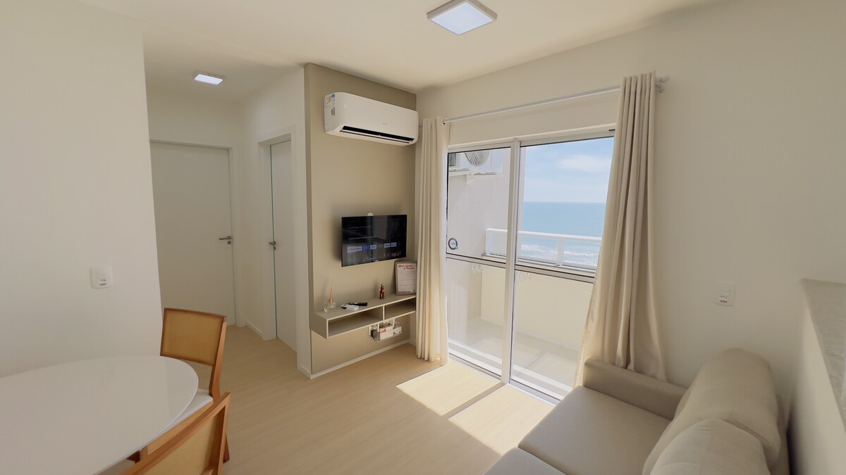 Apartamento com vista para o mar de todos os cômodos, e com uma bela vista para um morro. Localizado com frente para a praia e de costas ao morro. Mar calmo, ideal para a prática de caiaque, stand up e diversão das crianças! Água cristalina na grande maioria dos dias. Bares, restaurantes e banana boat ao redor! Todos os quartos possuem ar condicionado. Wi-fi 100 megas Tv smart. OBSERVAÇÃO: A taxa de limpeza é para o hóspede receber o apartamento limpo! O 5º hóspede dormirá num colchão extra