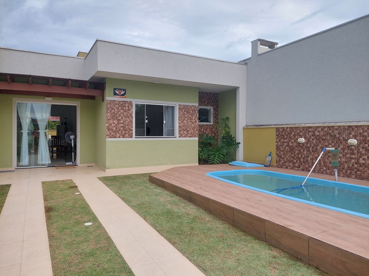 PISCINA AQUECIDA — UMA DAS ÚNICAS DA REGIÃO Com carinho em cada canto, esta casa homenageia minha vó. A piscina exclusiva tem aquecimento e tratamento com sal (mais suave pra pele e cabelo). Fica a 300m do mar, em área central e tranquila. São 3 quartos (2 com ar-condicionado), 2 banheiros, sala com TV smart e sofá confortável, cozinha equipada integrada à área gourmet, edícula com churrasqueira e mesa grande. Supermercado a 100m e moramos perto, sempre disponíveis pro que precisar.