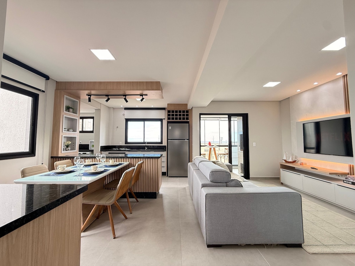 Apto recém terminado todo planejado e de excelente bom gosto. Acomoda tranquilamente 2 famílias, que buscam estar igual ou melhor acomodado que eu sua casa. Todos os ambientes climatizados, todos eletrodomésticos disponíveis e novos. Churrasqueira dentro da unidade. Condomínio conta com playground, fire place, churrasqueira externa, dentre outras facilidades e portaria remota 24h para segurança Dentro de 1 km vc tem farmácia, padaria, mercado, conveniência, restaurantes e outros comércios.