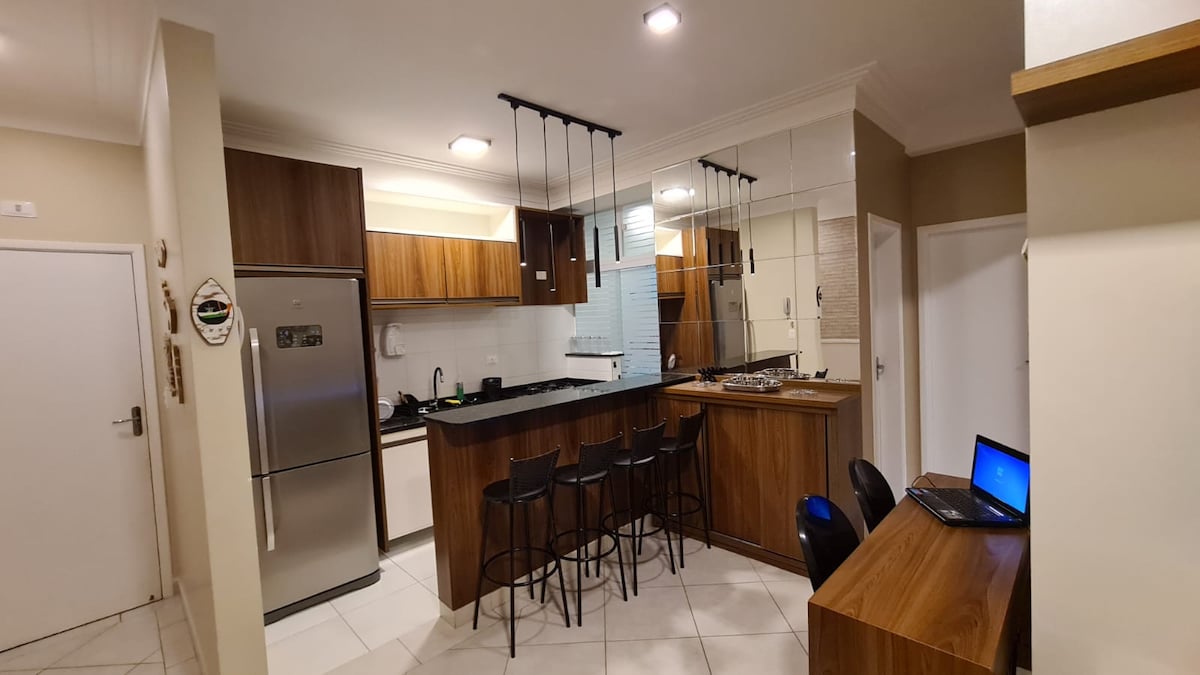 -Condomínio Reserva DNA, localizado na Praia Grande de frente ao mar. -Apartamento de 64 m2, com jardim privado de 22m2, localizado no térreo muito seguro para crianças... - 1 suíte com ar condicionado, ventilador e 2 camas (casal e solteiro). - Sala e cozinha completa integradas. - Lavabo. - Área externa com churrasqueira e máquina lava e seca - 1 Vaga de garagem Apartamento muito confortável, charmoso e elegante, todo decorado. Internet Wifi rápida - Fibra Óptica Energia 110v 6x sem juros