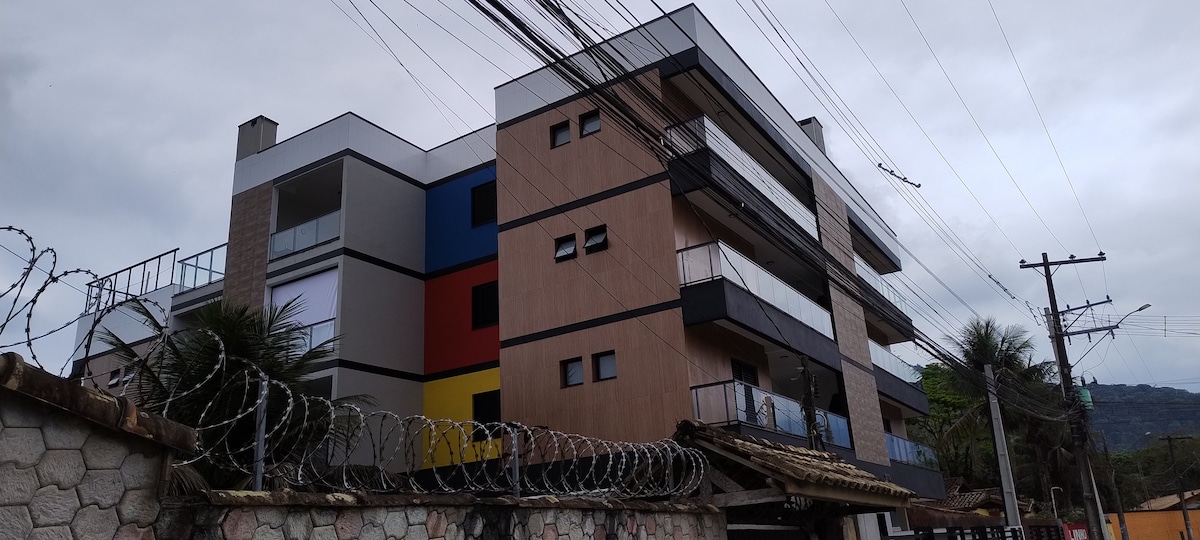 Meu espaço é perto de praia e belas paisagens. Você vai amar meu espaço por causa de as vistas, a localização, as pessoas e o ambiente. Meu espaço é bom para casais e aventuras individuais. Apartamento de 01 dormitorio, novo, com cama de casal com colchão de molas, sala com terraço, cozinha americana equipada com geladeira, fogão, microondas, sanduicheira, liquidificador e os demais utencilios, televisão e ventiladores de teto. É claro, ensolarado e tem vista para a Serra do Mar.