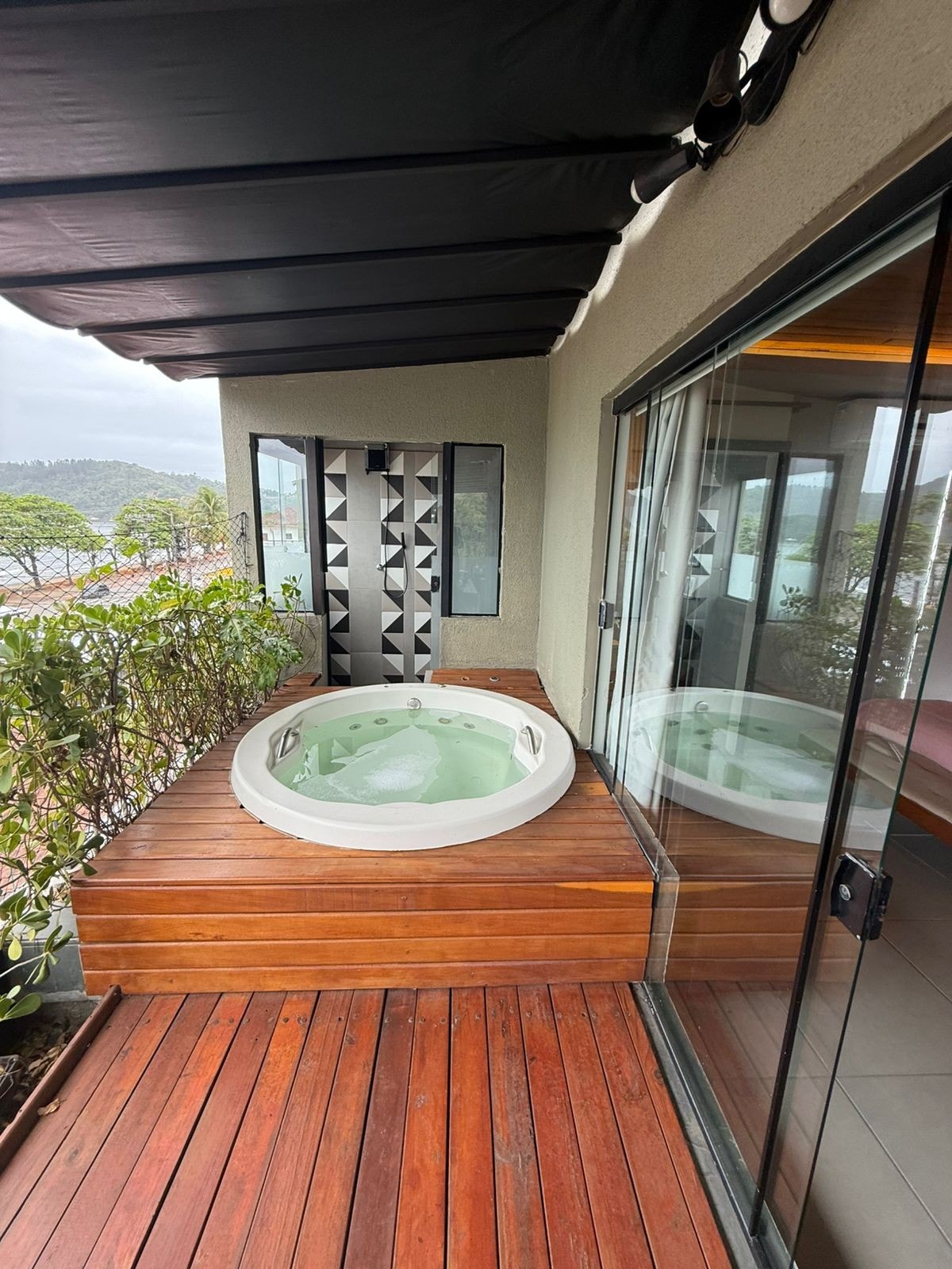 Apartamento completo no Cond. Reserva DNA Varanda c/ quintal e churrasqueira privados. Suíte e sala espaçosa c/ lavabo e a/c Roupa de cama/banho incluso, cozinha completa com utensílios, eletrodomésticos e filtro de agua. Máq de lavar e secar Smart tv e wi-fi. O apto em si não tem vista para o mar, as vistas são das áreas comuns e todos tem acesso.(ver fotos)